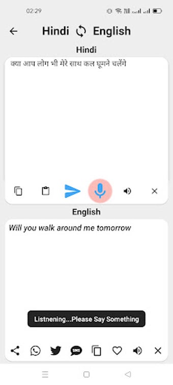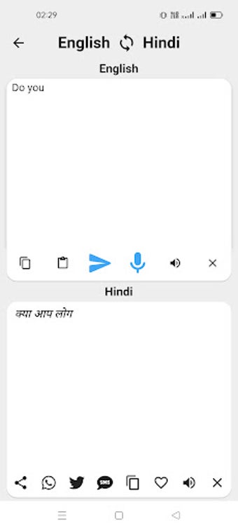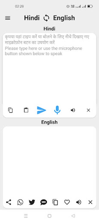 Denna gratisapplikation är en praktisk översättare som är mycket enkel att använda och fungerar snabbt. Den översätter texten från Hindi till engelska och från engelska till Hindi. Översättningen görs med hög noggrannhet. Du kan kopiera den översatta texten och klistra in den var som helst du vill. Översättningen görs med hjälp av en kraftfull motor.